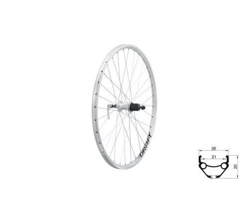 Fűzött hátsó kerék KLS DRAFT V-brake R, 26", silver