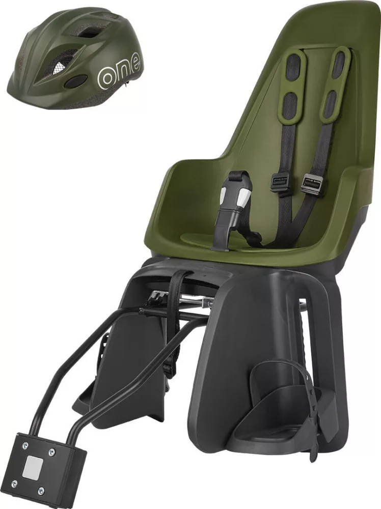 Bobike hátsó gyerekülés ONE maxi + in-mold gyereksisak szettben, vázra és csomagtartóra szerelhető, olíva zöld S